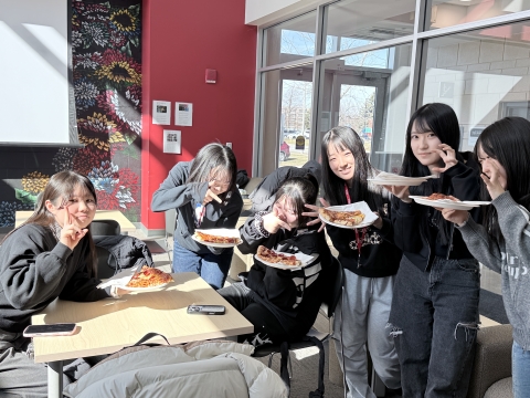 午前中はオリエンテーション、昼はピザランチをして、キャンパスツアーがありました。